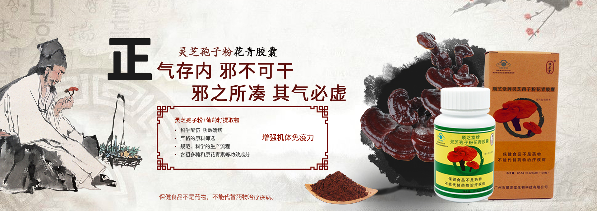 廣州市順芝堂生物科技有限公司成立于2003年,是經(jīng)國家工商局批準(zhǔn),以弘揚(yáng)中醫(yī)藥養(yǎng)生文化,從事生命健康產(chǎn)業(yè),集科研開發(fā)、健康咨詢、生產(chǎn)銷售于一體的科技企業(yè)。 公司以大力弘揚(yáng)中醫(yī)藥養(yǎng)生文化,實(shí)現(xiàn)“健康青春順芝堂”的目標(biāo)為企業(yè)宗旨;堅(jiān)持“以人為本,追求卓越、臻于至善”的企業(yè)精神;探索實(shí)踐產(chǎn)品與技術(shù)相結(jié)合的順芝堂特色的養(yǎng)生之路。遵循“讓消費(fèi)者獲得健康、讓經(jīng)營者獲得利益、讓企業(yè)得到發(fā)展”三個有利的經(jīng)營原則,堅(jiān)持以“科技是第一生產(chǎn)力”理論為指導(dǎo),不斷研發(fā)出適應(yīng)市場需求的的高科技、高品質(zhì)、高功效的系列產(chǎn)品;